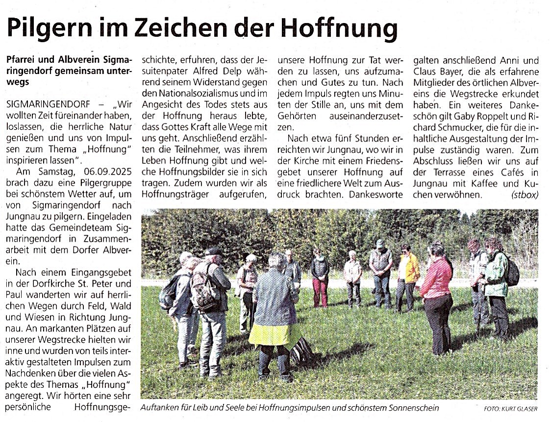1 Jahr lang war Ida Halmer in Kambodscha > in einem Blog erzählt sie von diesem Einsatz > Bericht zu "Pilgern im Zeichen der Hoffnung" am 6.9.25 - Homepage der SE > Bericht in der Schwäbischen Zeitung > ...und im Fidelisbrief ![]() sicher und umweltfreudlich entsorgen.. > ![]() |